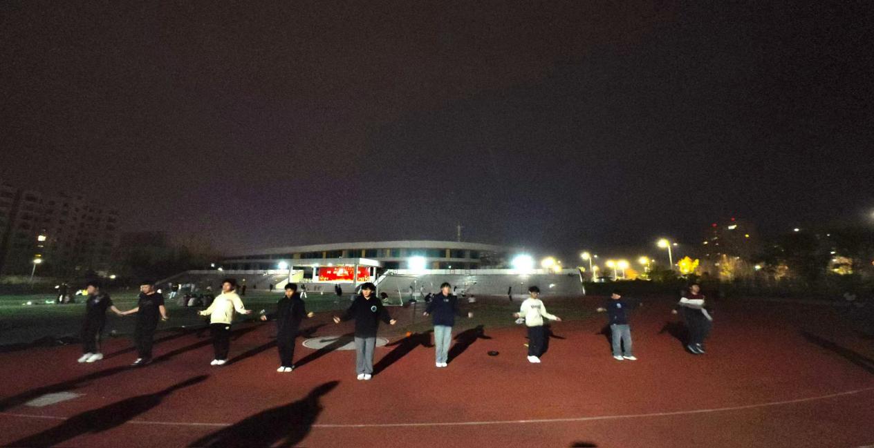 1000米跑采用人工计时方式,两名裁判同步计时,确保计时精准;投掷实心球使用专业测量卷尺,从落地点垂直量至投掷线,保证数据准确;一分钟跳绳统一使用带计数功能的专用跳绳,同时辅以同步计数复核,双重保障成绩真实。所有项目成绩均实时公布,全程公开透明,确保每一位社员的成绩客观公正;赛场上,专用垫子前,大家凝神聚力、纵身一跃,每一次起跳都是对爆发力的极致展现,社员们精神抖擞、斗志昂扬;1000米赛道上,他们咬牙坚持、奋力冲刺,脚步声与呼吸声交织成奋进的旋律;实心球投掷区,社员们屈膝、后仰、挥臂,实心球在空中划出美丽弧线;跳绳场地内,绳影在黑夜绽放,绳身化作流动的荧光,每一次跃起都撕裂时空的缝隙,每个人都在全力突破自我。